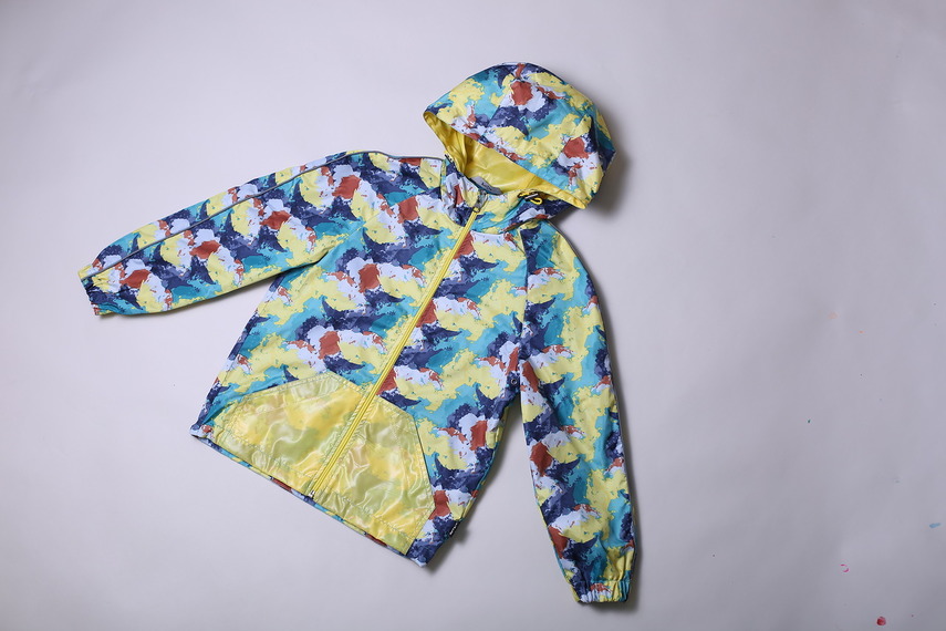 Ветровка прямого силуэта с центральной застёжкой на «молнию». Детали: Объём по низу ветровки регулируется кулисой со шнуром. Ка-пюшон не съёмный. Объём капюшона регулируется кулисой со шнурком и фиксаторами. Центральная застёжка прикрывается ветрозащитной планкой. Карманы накладные. Рукав покроя реглан с притачными манжетами. Светоотражающие элементы размещены на рукавах.